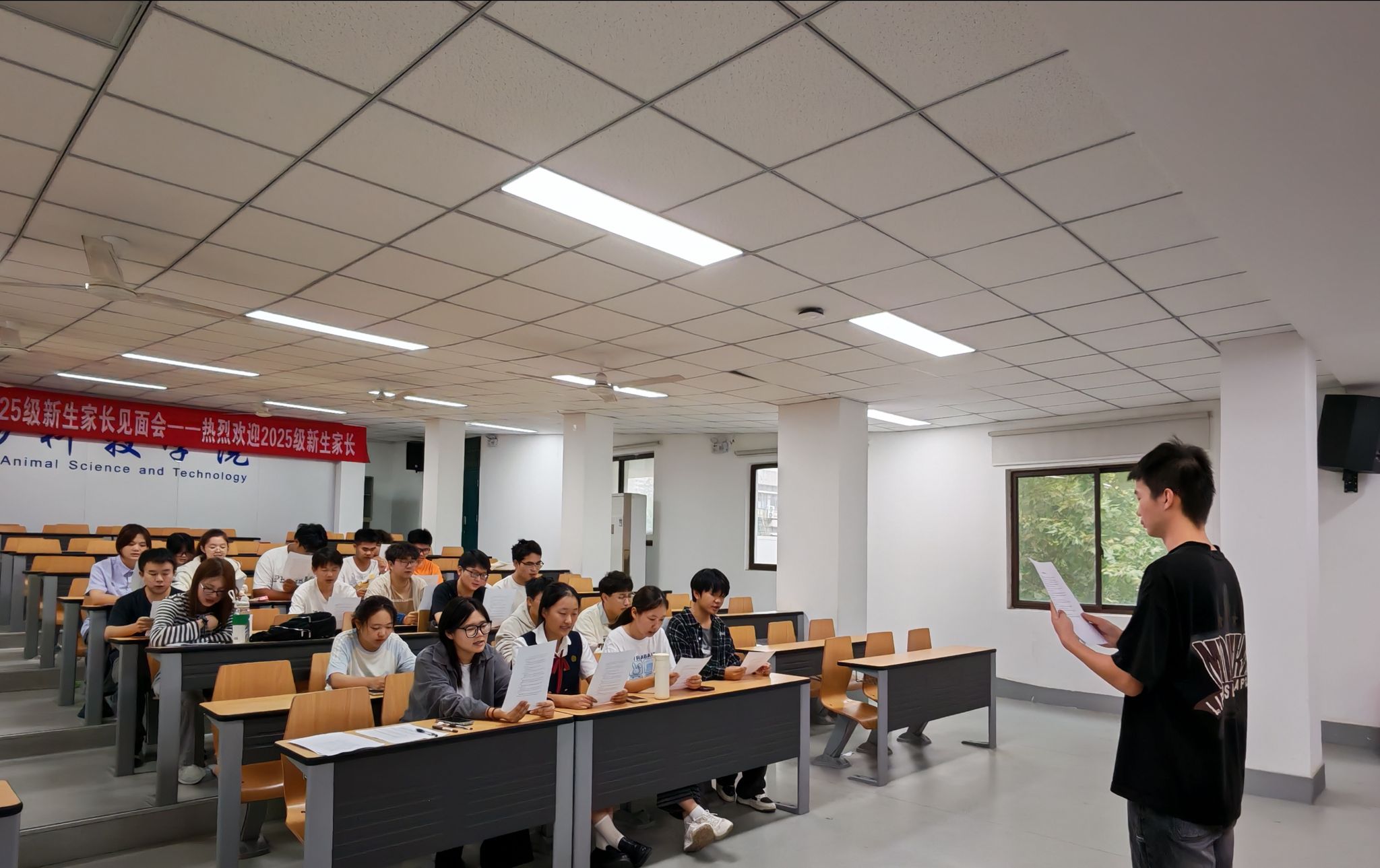9月27日早晨,学院组织24级和25级员工代表开展“宪法晨读”活动。员工们精神饱满、坐姿端正,以洪亮的声音共同朗读宪法部分条款,他们在朗读中不仅加深了对宪法内容的记忆,更在聆听与感悟中切实筑牢宪法意识,推动宪法精神在员工心中落地生根。