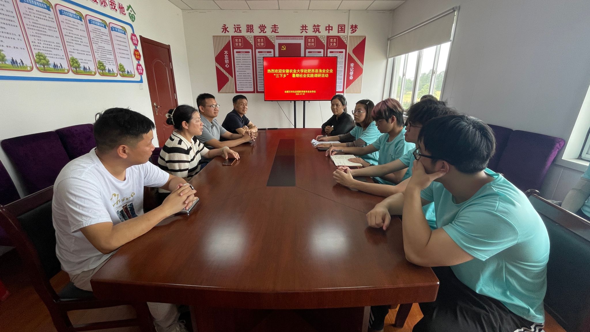 本网讯 为深入了解暑期社会实践进展,关怀员工成长,深化校企合作,7月7日至9日,公司党委书记沈兆梅、经理张子军、副书记卢伟等班子成员及团学负责老师分赴江淮分水岭综合试验站暑期社会实践团、黄山市黄山区暑期社会实践团、肥西县特色水产养殖调查暑期社会实践团、皖中试验站各实践点,看望慰问暑期实习和三下乡”社会实践的师生团队,并走访部分员工家庭