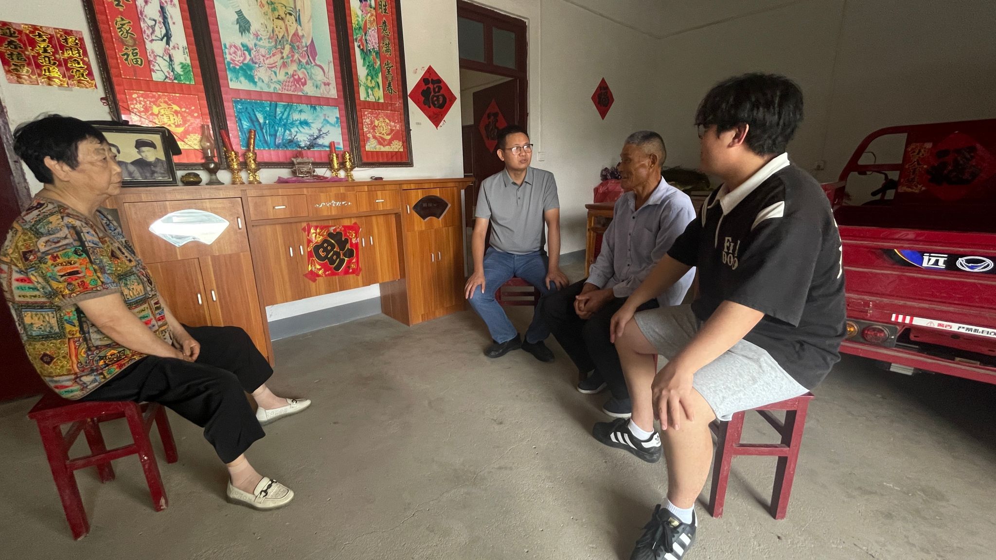 在看望实践团队的同时,学院特别深入员工中间,慰问家庭经济困难员工代表。在定远县,慰问了2023级动物科学专业林可恩同学;在肥西县,走访了2023级水产养殖学专业汤然同学在庐江县,看望了2022级水产养殖学专业代方辉同学;老师和家长面对面交流了同学们在校学习生活状况,并送上了学院的慰问品。