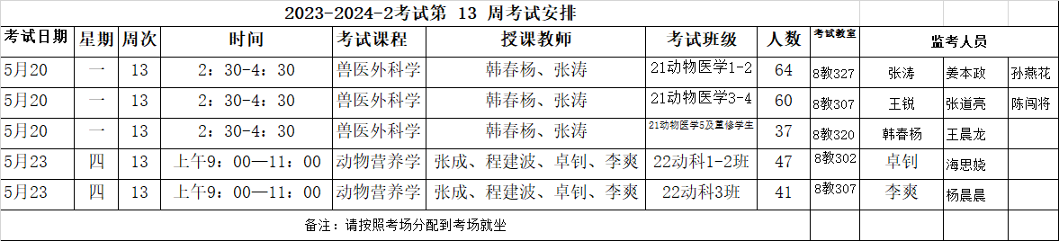 第13周专业课考试安排