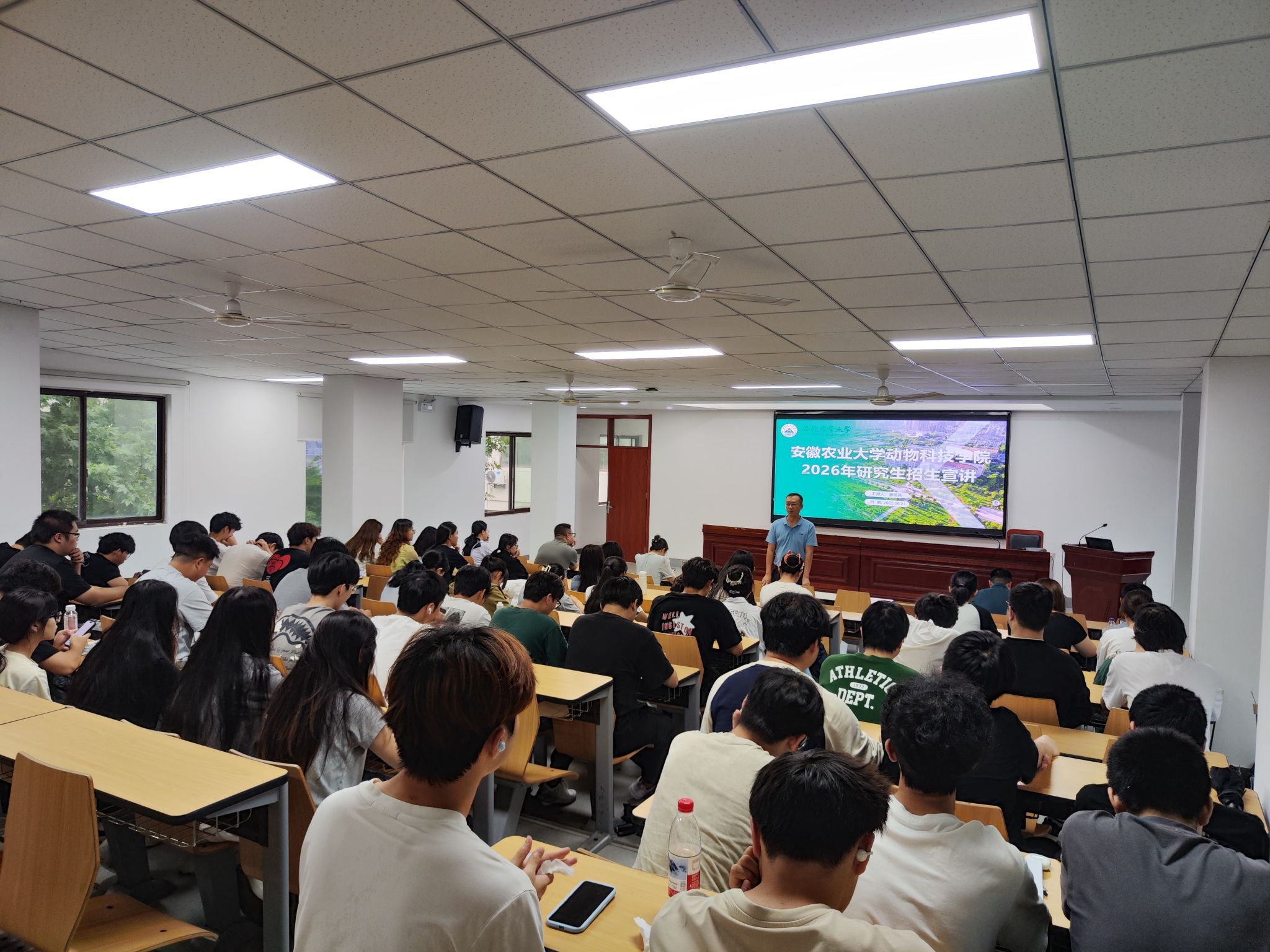会上,曹祖兵对同学们积极追求学术深造的志向表示肯定与鼓励,深入分析了当前国家在畜牧、水产等相关领域的发展战略与人才需求,强调了高层次专业人才在推动产业转型升级和服务乡村振兴中的重要作用。宣讲会结合学院学科特色与优势,围绕团队队伍、人才培养、科学研究、社会服务、奖助学金体系及招生专业近三年录取分数线等方面,重点解读了2026年研究生招考的最新动态、政策要点并对报考流程、关键时间节点进行了梳理和温馨提示。