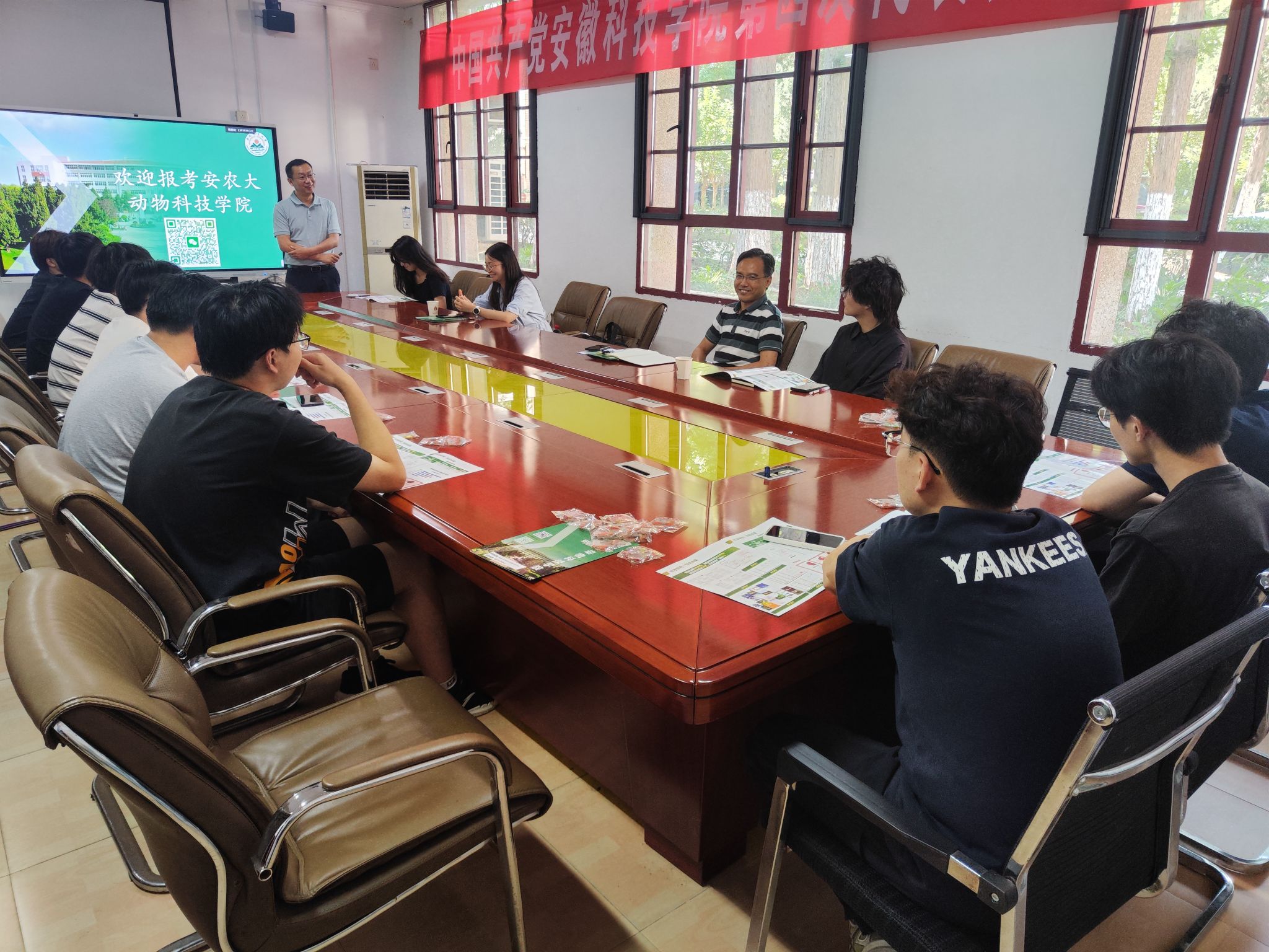 本网讯 为拓宽优质生源渠道,吸引优秀学子报考,7月8日下午,学院副经理曹祖兵、袁小琛率队,携水产系学位点负责人张志强、副主任许然、教师陈啸等一行,分别前往安徽科技学院、淮南师范学院开展2026年研究生招生宣讲活动。安徽科技学院动物科学公司党委副书记、副经理(主持工作)周金星,淮南师范学院生物工程公司党委副书记王云等参加宣讲会。